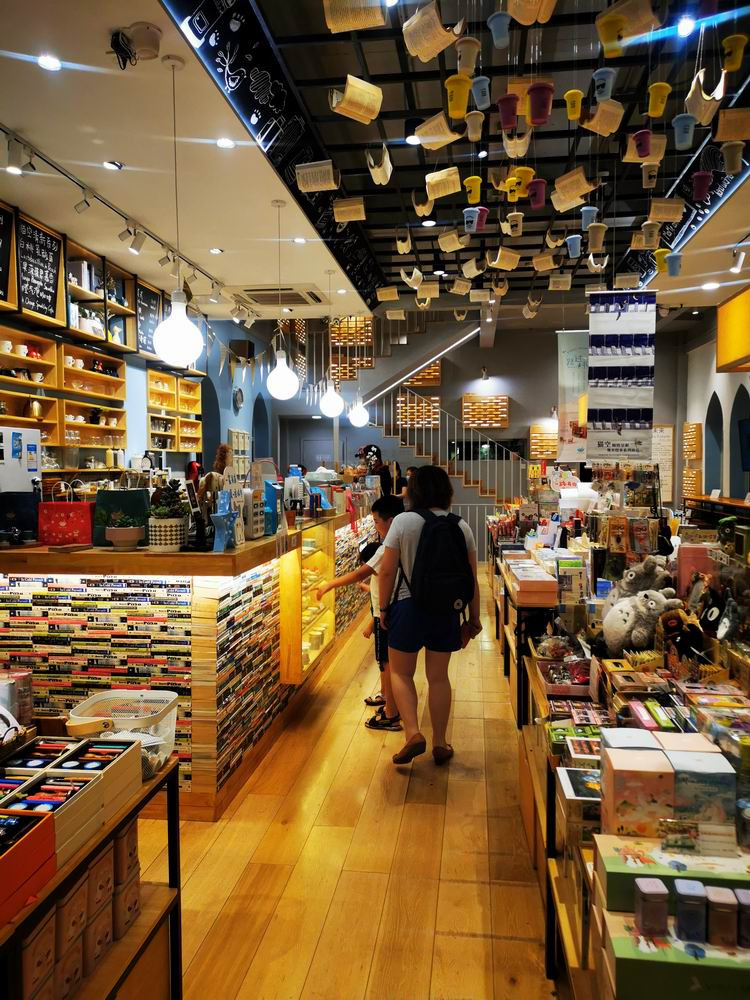 这是“猫的天空之城”概念书店。它起源于江南古城苏州,现已分布全国许多地方,大连也是其中之一。
