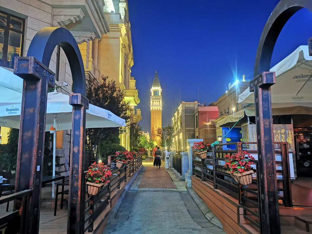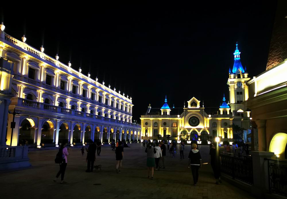 夜幕降临,华灯初上,威尼斯水城迷离的建筑灯光仿佛是到了欧洲。照片摄于东方水城。