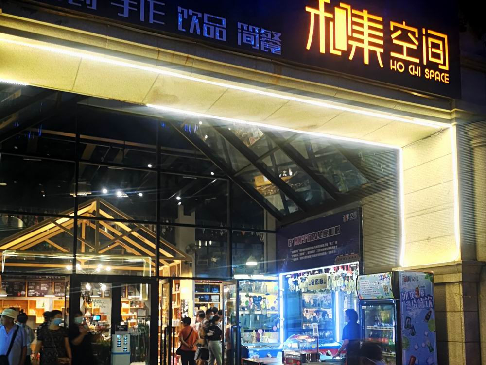 夜幕中的东方水城,会让人忘记了时间。夜已深,我们不得不恋恋不舍的告别东方水城。照片摄于东方水城。