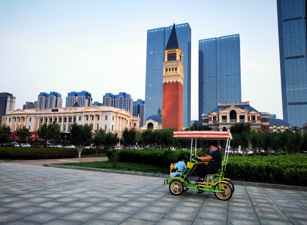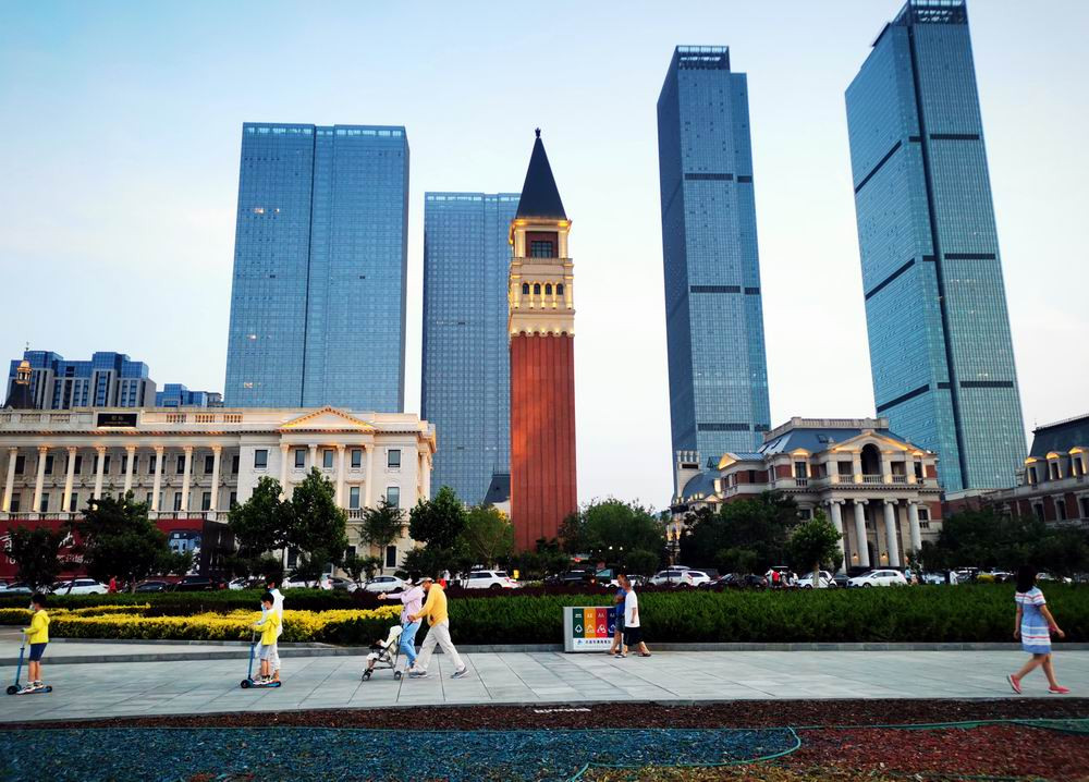 2020年7月上旬的一天傍晚,和夫人同游大连东方水城。尽管疫情还没有结束,尽管出门还要戴口罩。但东方水城外面的广场上已经有很多游客了。