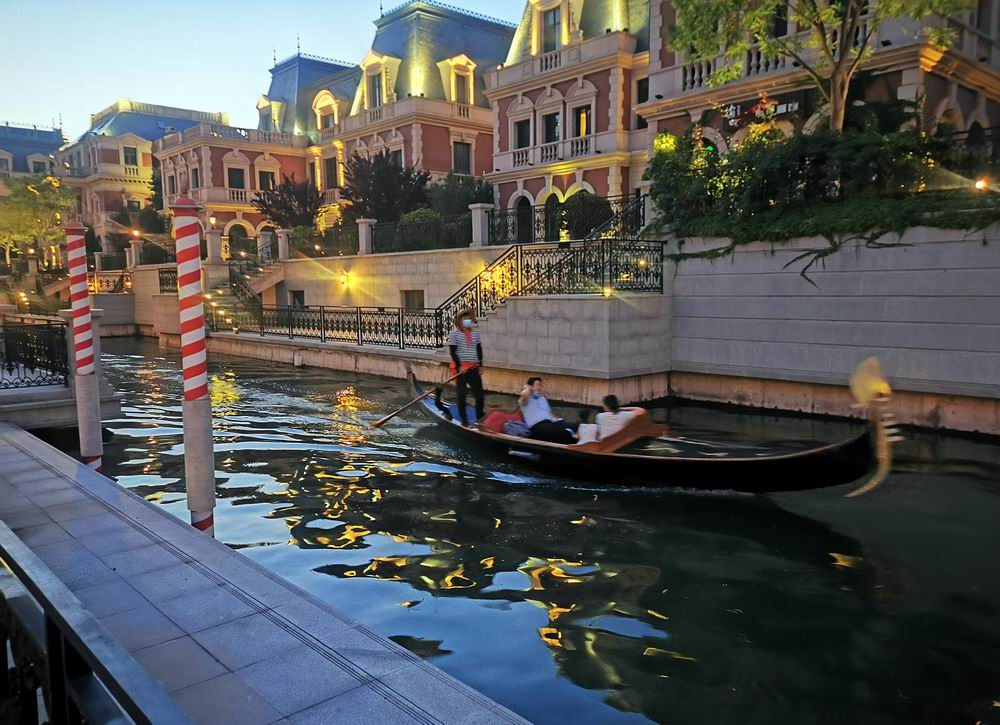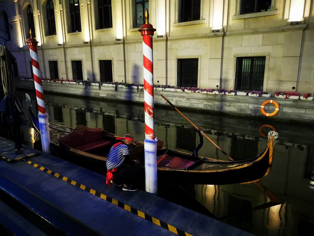 与威尼斯的贡多拉不同之处在于,这个船是电动的,不是人工划桨的。照片摄于东方水城。