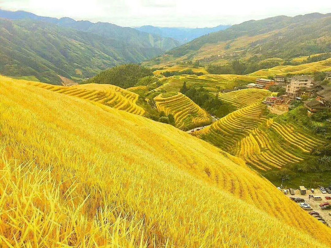 梯田上覆盖了金黄,层层叠叠