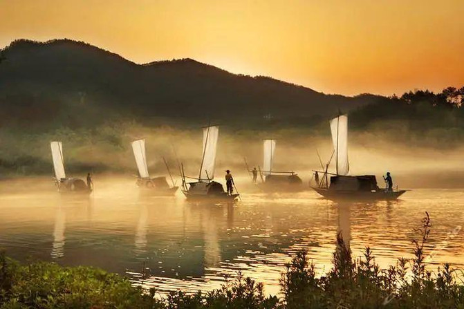 小船轻轻划过江面