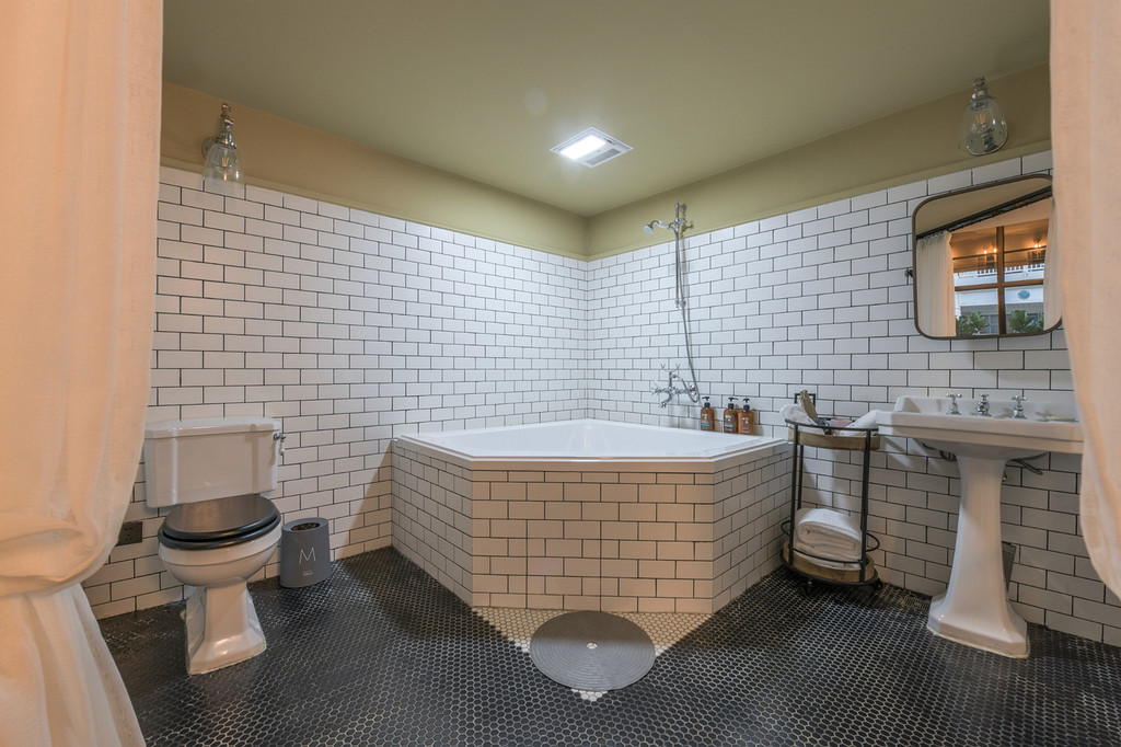 卫生间的设计是融合了民国大连格调与现代地中海风格,给人一种中西结合的建筑的张力以及混搭型的民宿文化。这种民宿不仅是渔人码头一带少见的,恐怕在整个大连也不曾多见的吧?回头有时间慢慢的游玩大连,验证一下这是不是大连最有韵味的民宿。