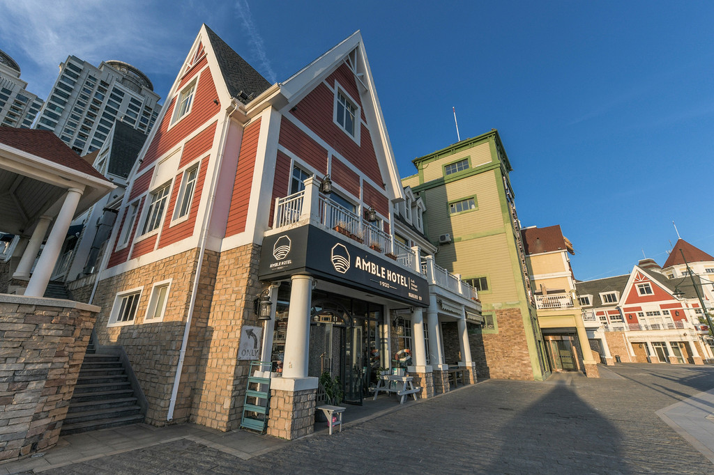 经过朋友商议与甄选,就选择大连渔人码头最有特色的民宿来入住了,选择这家民宿的原因除了周边无特别好的酒店之外,还有这民宿是渔人码头一带最值得体验的民宿。这家民宿的名字简约而不简单,以中英文对照的方式来标注其名字,上面写着AMBLE HOTEL,中文写的是安步民宿!外形上来看属于欧式风格的,在大连算是比较不多见的。