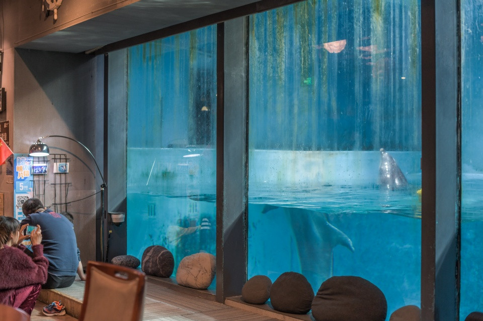 鲸咖啡西餐厅的这种卖点吸引了我的兴趣,本来很喜欢动物的山野君看到这种可爱的海洋动物们活泼的玩耍着,我也凑近前去看看这些海洋的精灵们,看到它们的样会被萌化了。带孩子来这里欣赏海洋动物实在是太好了。当然了,这不限于孩子们了,喜欢海洋世界动物的食客也可以来这里就餐。