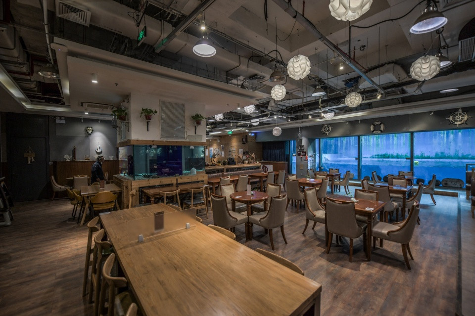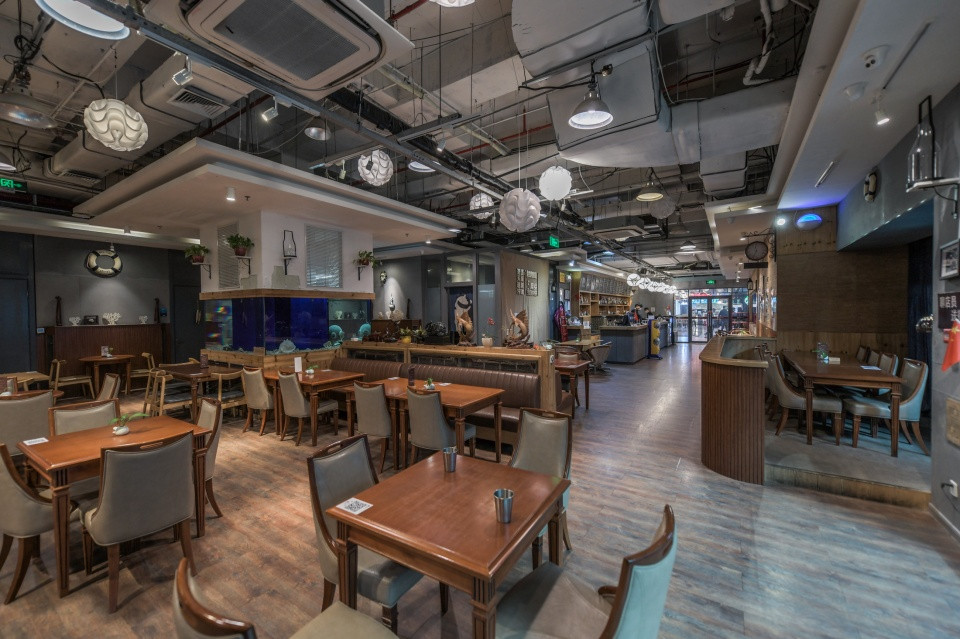 内部装修是以典型的咖啡屋为主题,这种带有轻奢与小清新格调的西餐厅,让人耳目一新。更为重要的是里面的环境非常不错,并且拥有大连唯一的海洋馆内观景西餐厅,这个才是最大的亮点呢。