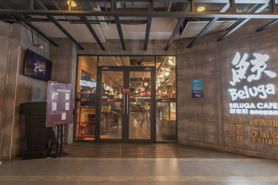站在海洋馆的外面还以为是一个普通的海洋馆,进入之后才发现内部是别有洞天。进入室内的左手方向就是餐厅了,餐厅大门口有一个很醒目的“鲸”字。此时此刻不用山野君介绍,我相信大家都能够知道这是一观赏海洋馆动物鲸鱼为主题的西餐厅了。