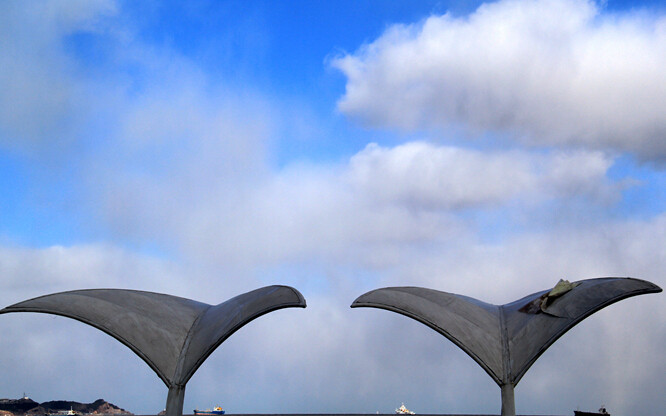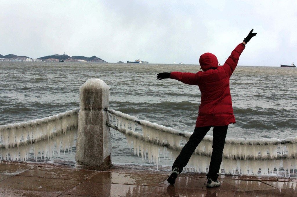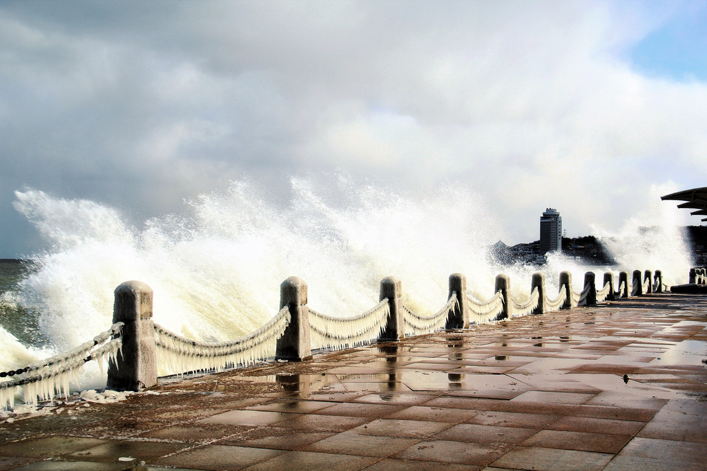 从烟墩角一路狂奔到烟台,竟在环海路看到了在大连一直想看的冰溜子!海浪咆哮着爬上堤坝,掀起三丈大浪,警告人们退避三舍。冰溜子晶莹剔透,蜿蜒曲折,像是为城市挂上了项链,我急忙凑上前去,拍了个paosi撒腿就跑了。