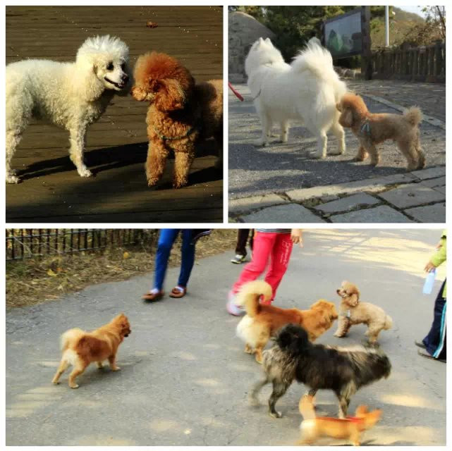 球球轻车熟路的引着路,遇见老朋友就箭一样的冲过去打招呼,碰到个头大的狗狗,便垂下尾巴溜边渡着步。牠也会装懒耍熊要人抱,可是我抱着牠走,一离开好友身影,球球边像孩子找不到妈似得哀嚎起来。活到今天,我第一次真真地领略的什么叫“夹着尾巴”、“狗仗人势”、“狗眼看人低”啦~~