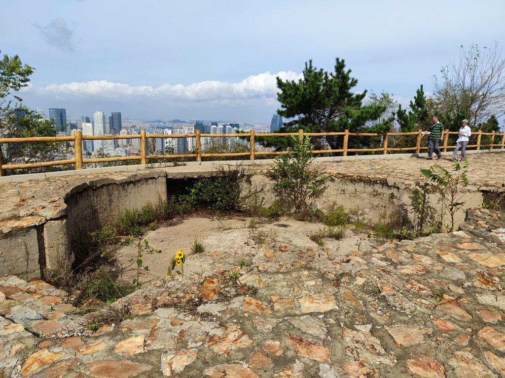 徒步:先到大连植物园,出园后经中南路拐进山岭巷,上炮台山参观炮台遗址,山势不高,沿着山脊行走可远眺会议中心及外海,颇有站在香港狮子山观看中环的感觉。走不远便看到炮台遗址和各种防御工事,是日本人在二战时为了防御美军登陆大连而建造的。下山时走小路经过颇多山坟。