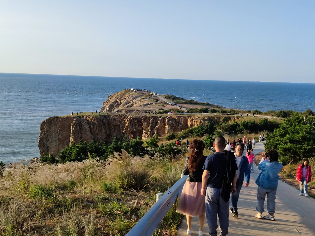 开车前往团山海洋公园,沿海蚀风景栈道行走,偶尔走下海滩近距离接触海蚀岩,聆听海潮与岩石千万年的倾诉。来到空中玻璃栈桥,全方位三百六十度临空,脚底玻璃宽大透明,站在上面有种御虚而立的奇妙感觉,步行时觉得每一步都即将失足踏入悬空,不真实而又很刺激。