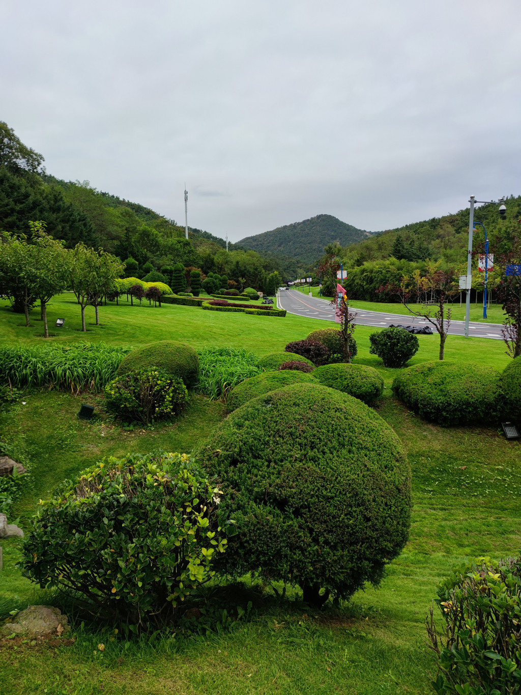 下山后经过山峦街接上迎宾大路,迎宾路两边植物景观经过精心修葺,太漂亮了。路边有专门开设的人行景观栈道,马路上不时有仪容威武的警察巡逻摩托车队驶过,可惜没有看到传说中俊美潇洒的大连女骑警。