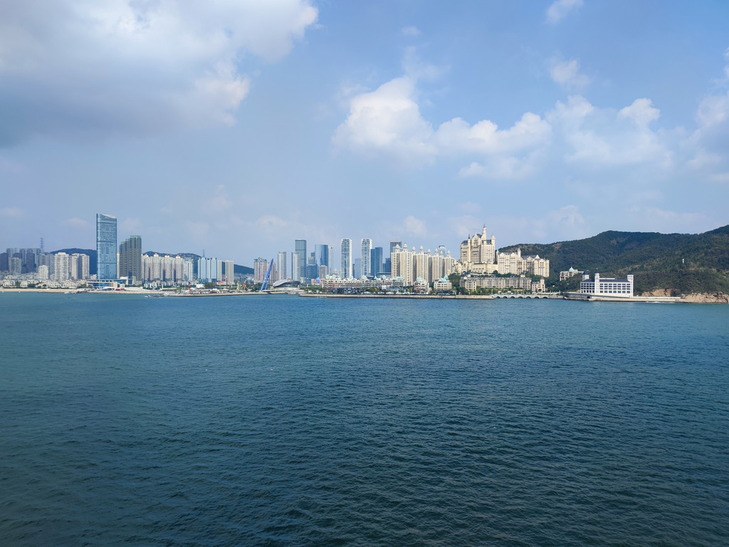 走京哈高速接沈海高速,八百多公里,开车十小时。中途在锦州住一晚,第二天到达大连,住喜莱德海景公寓酒店(大连会议中心店)豪华海景房,窗外便是会议中心(中国十大剧院之一)和外海。晚上走到公寓附近大连凯丹广场四楼吃饭。