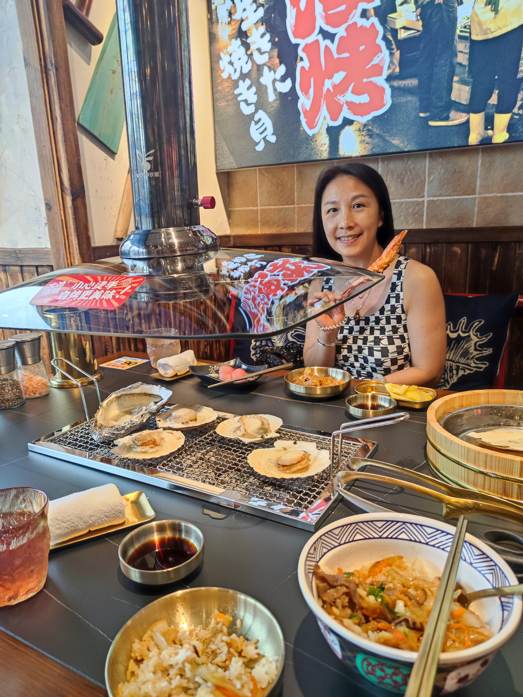 回程打的到西南路大渔海烤店吃炭烤海鲜,点上大虾、元贝和生蚝,饭店装潢和海鲜味道都不错。