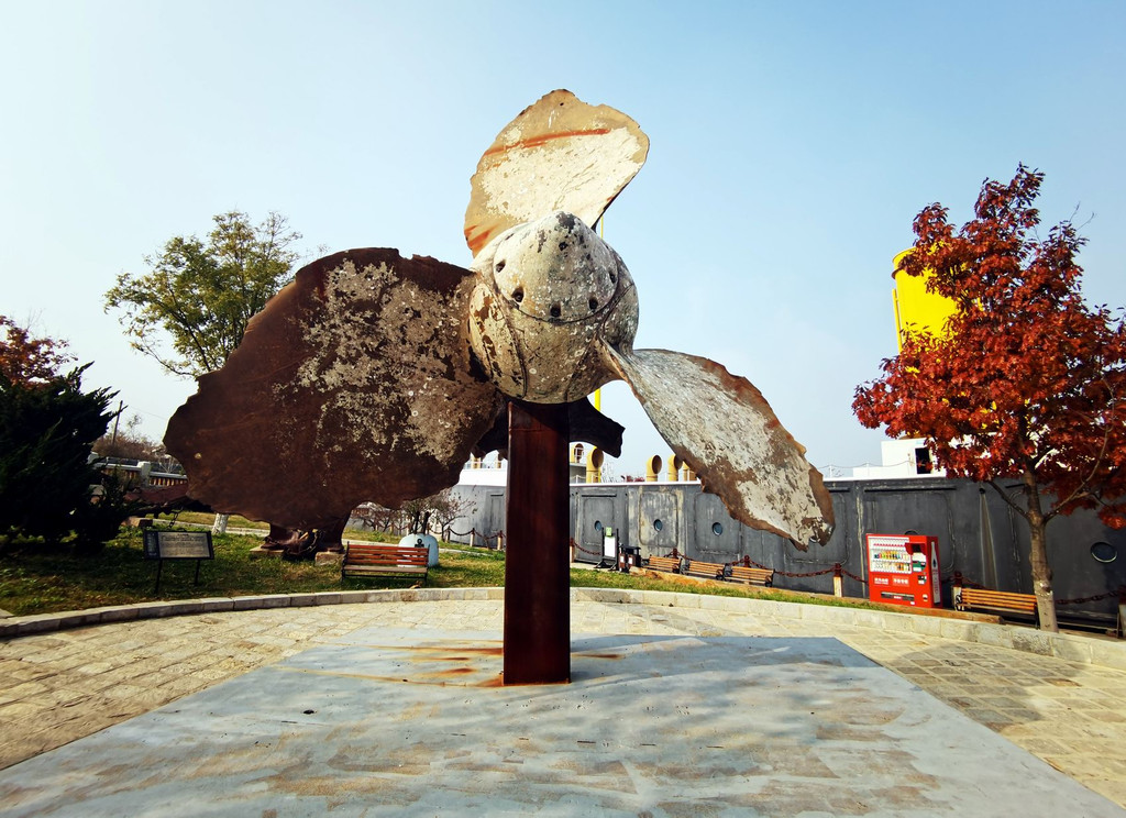 这些曾经沉睡在旅顺口海域海底的舰船零件,诉说着一桩桩惨烈的战争故事。照片摄于旅顺海战公园广场。