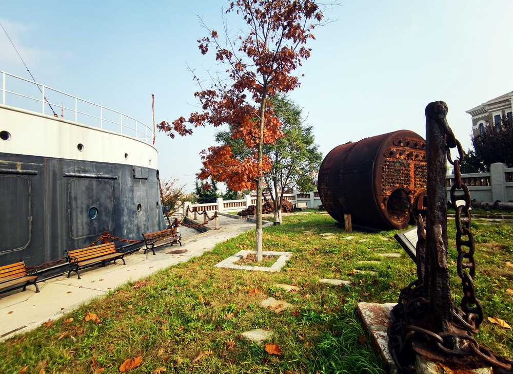 旅顺海战公园位于旅顺寺沟路369号,清风小镇(闯关东)影视基地内。图为在旅顺海战公园致远舰上拍的清风小镇(闯关东)影视基地。