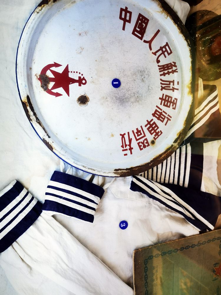 这是夫人在复原的北洋海军致远舰上拍的纪念照。