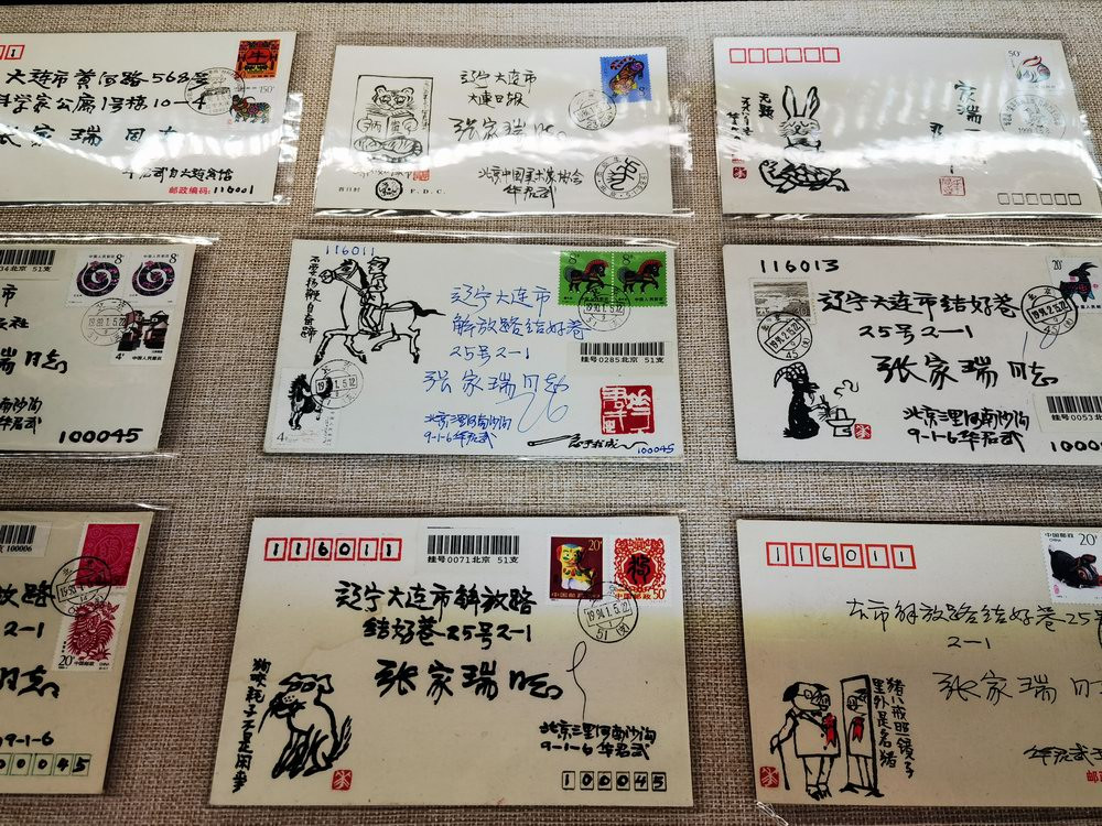 华君武先生为张家瑞题字:“海内存知己”,是二人友谊的见证。图为华君武先生每年赠与张家瑞的贺年生肖手绘封。