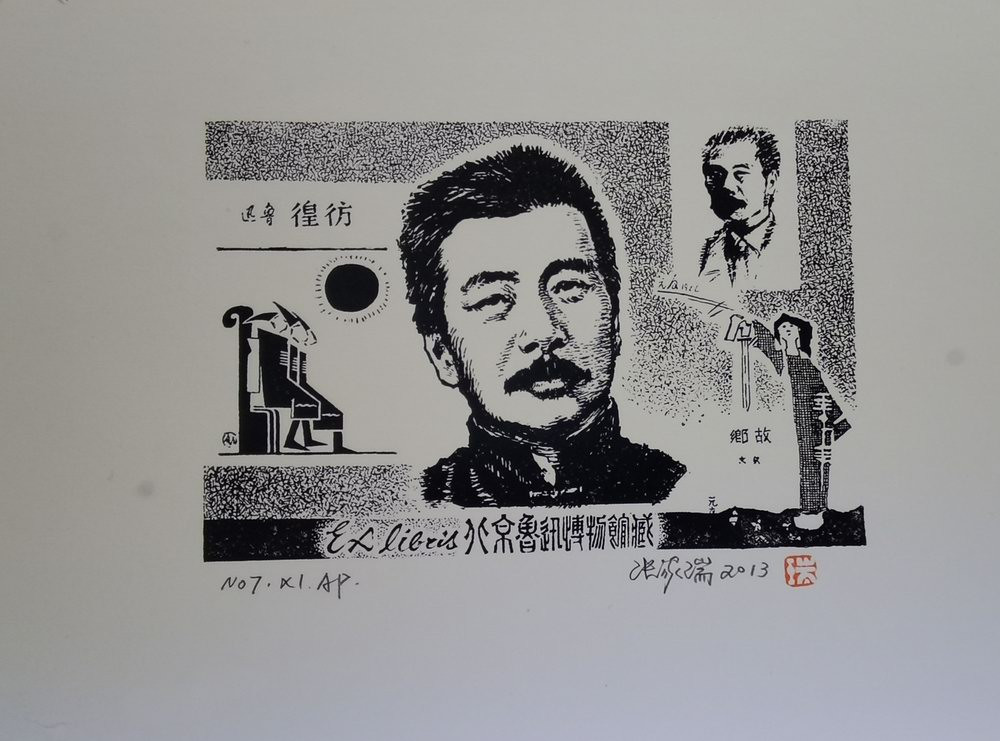 张家瑞作为新闻人又是艺术家,除了版画藏书票,还涉猎平面设计、艺术评论、随笔、散文。出版有《张家瑞版画》《张家瑞藏书票》《苦乐居文集》《外国藏书票精粹》等30余册。图为我与张家瑞先生的合影。