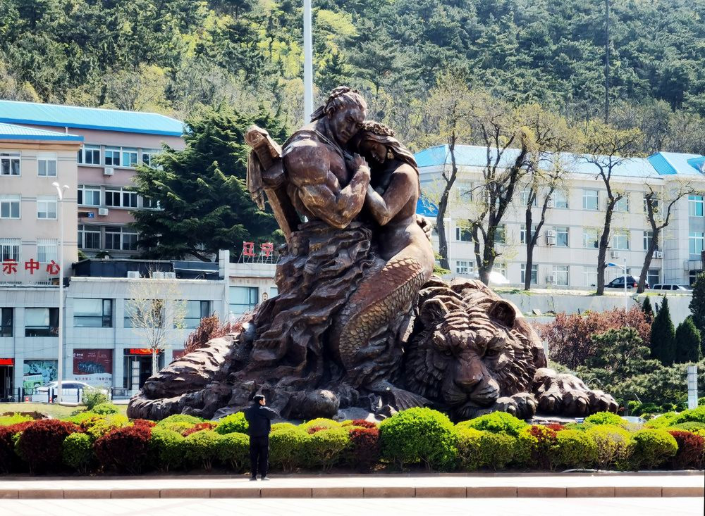 2022年的五一节,因为疫情影响不能去外地旅游,与老伴一道去家附近的大连老虎滩海洋公园转转。图为老虎滩海洋公园广场上的雕塑。