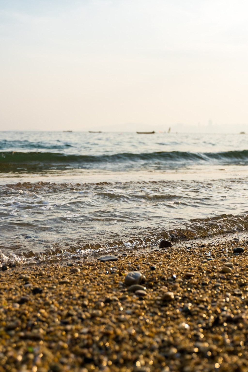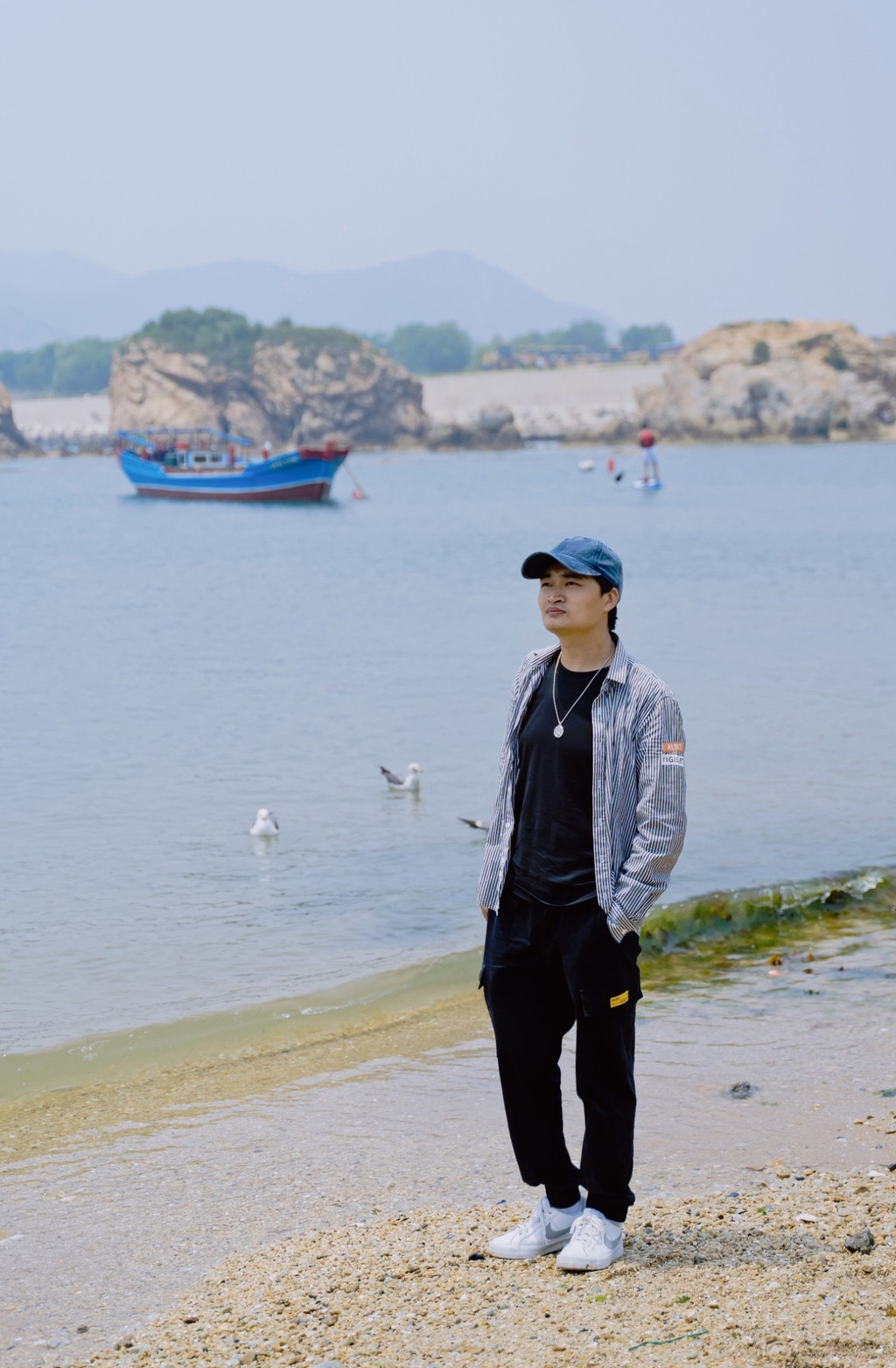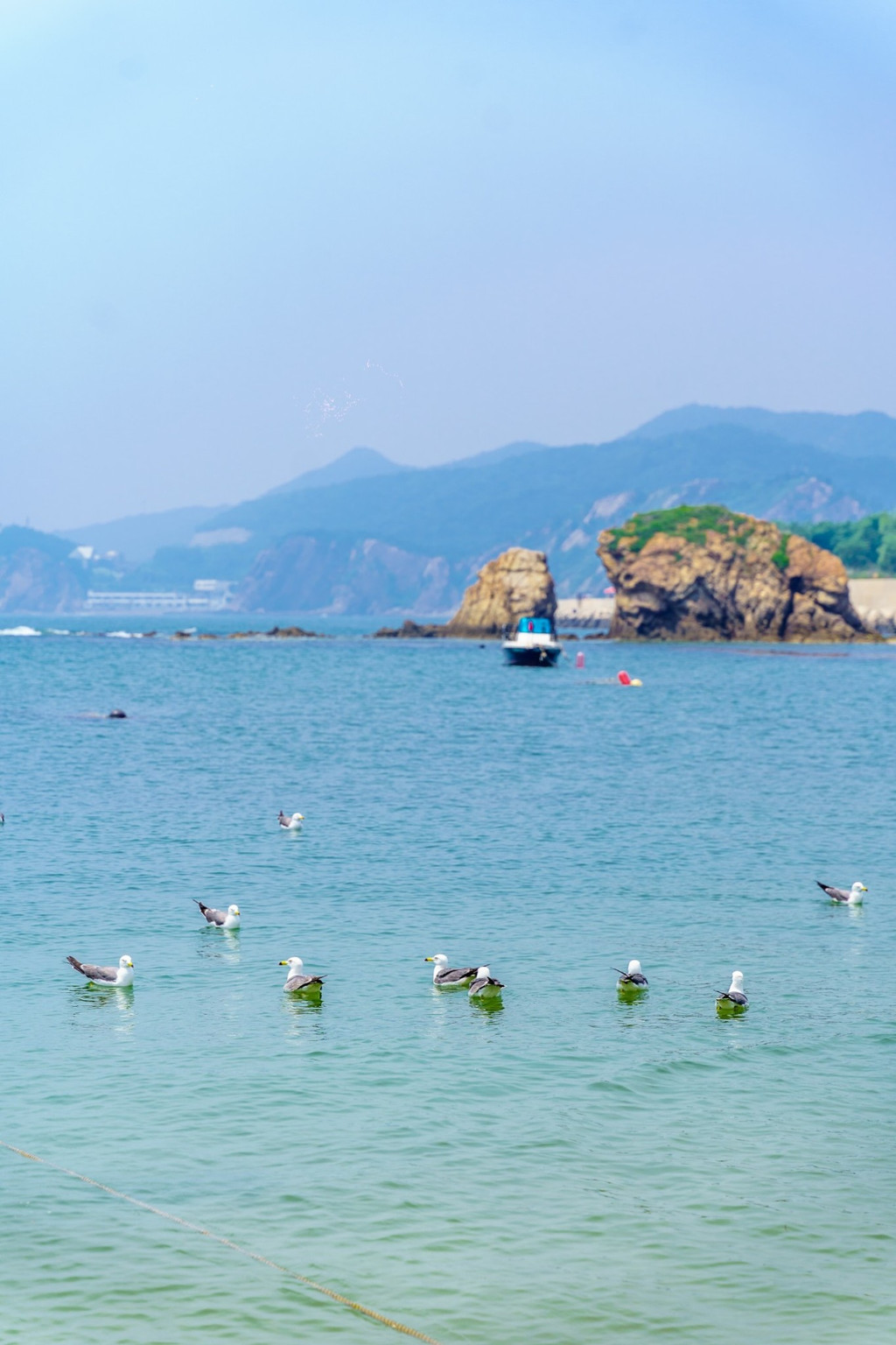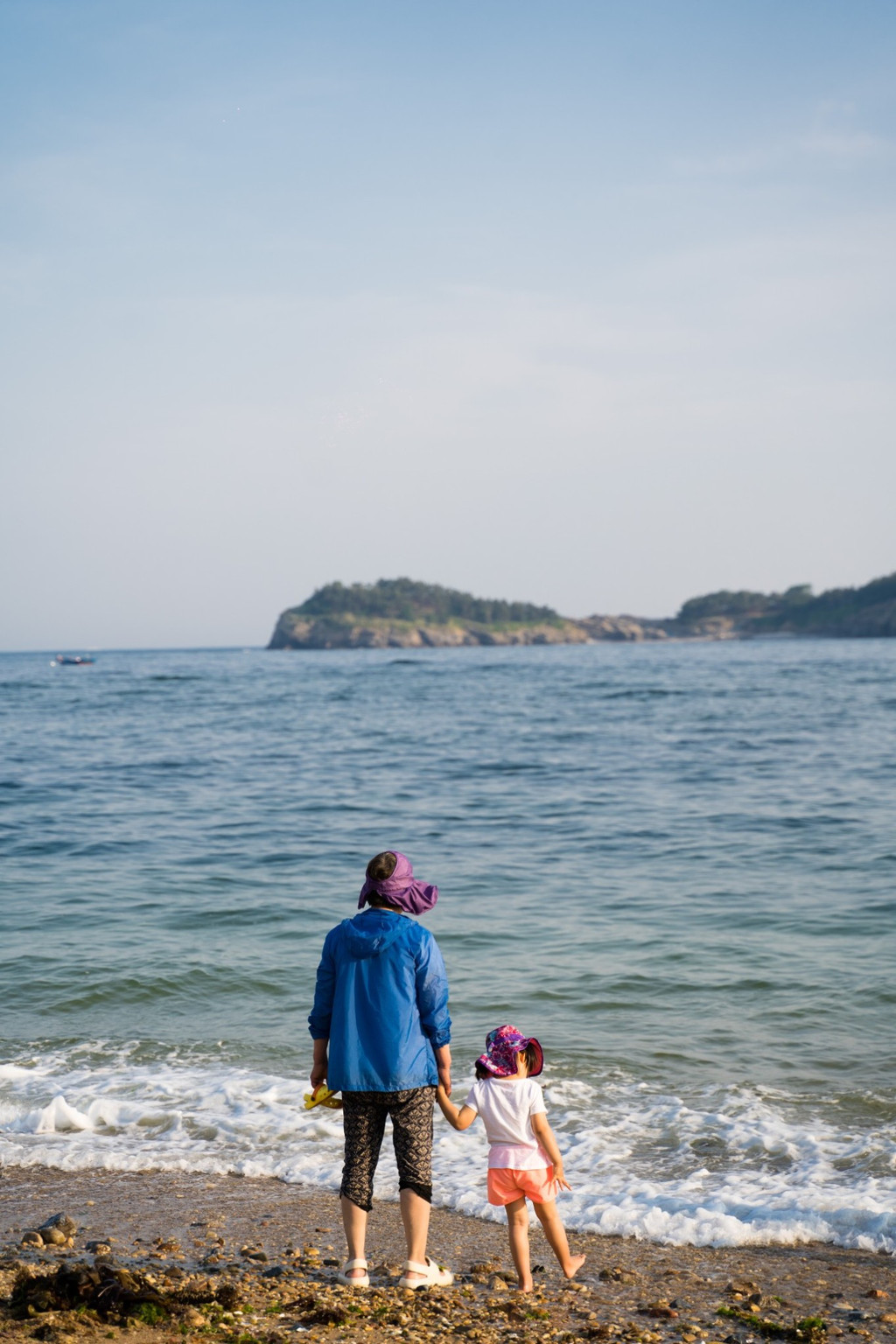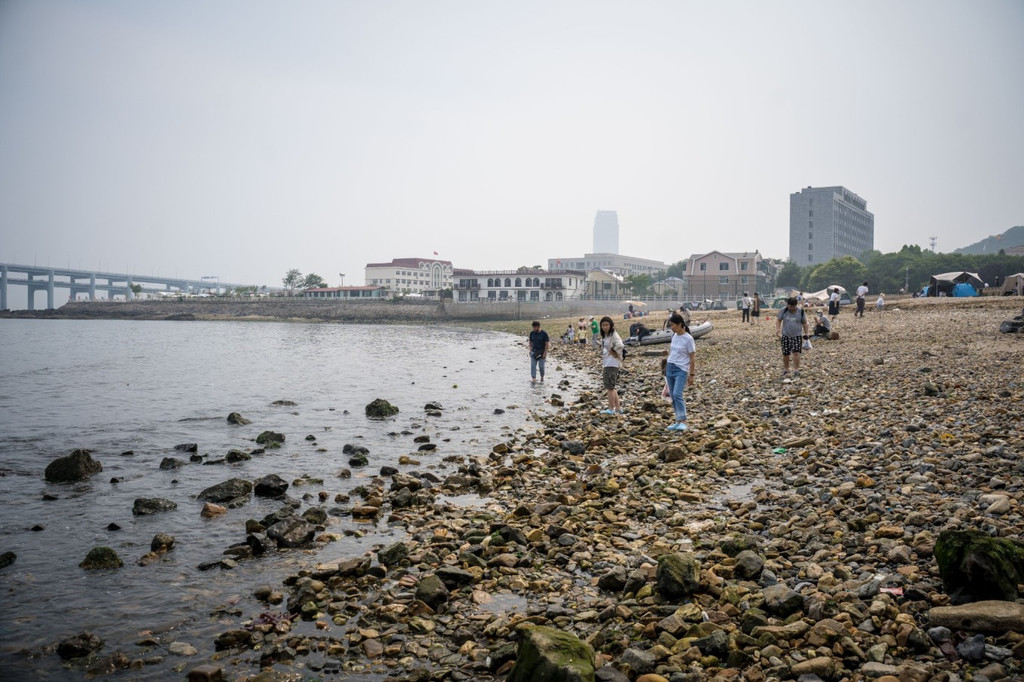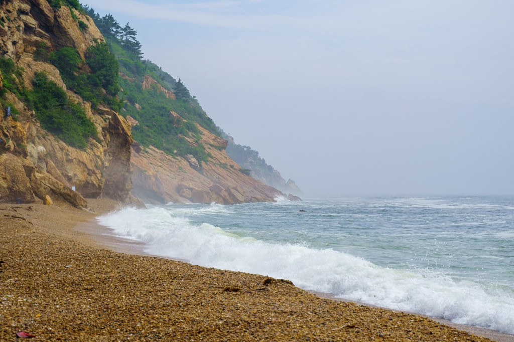 这片海滩不算很大,但海水非常清澈,在这里散散步、晒晒太阳,或在滩上拾贝壳和鹅卵石,很是惬意。但不同于南方的沙滩,这里海滩的沙比较粗糙,还夹杂着很多石头和贝壳碎片,赤脚行走会有些硌脚。