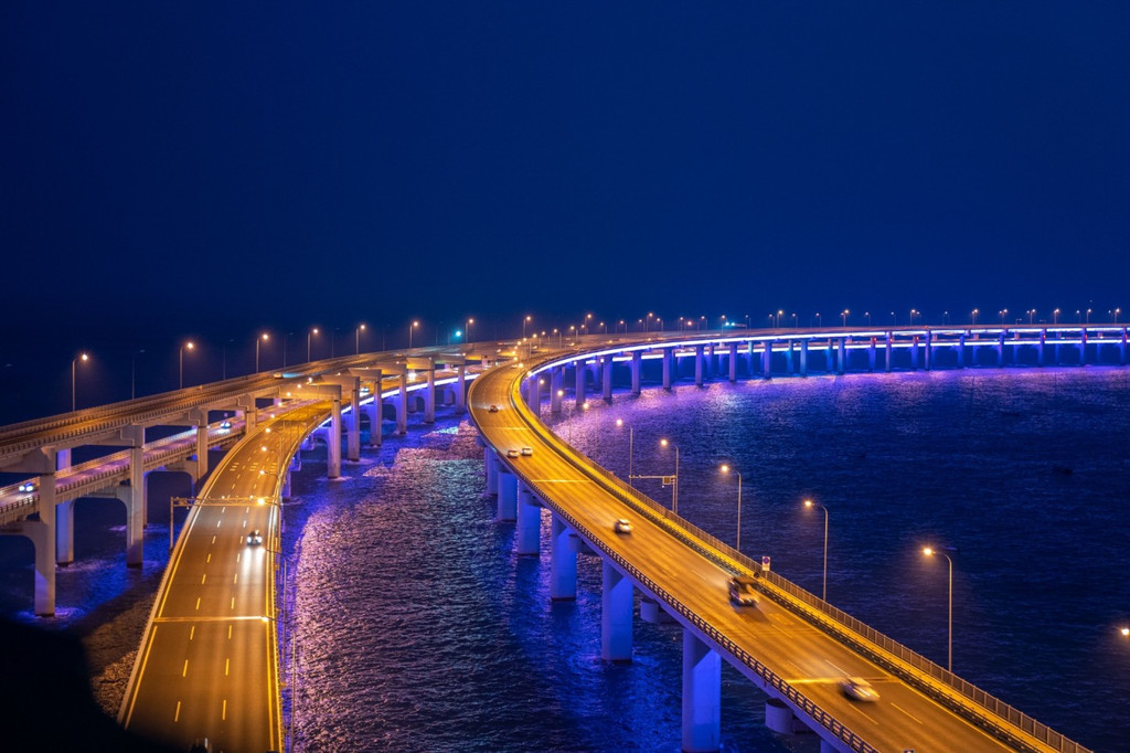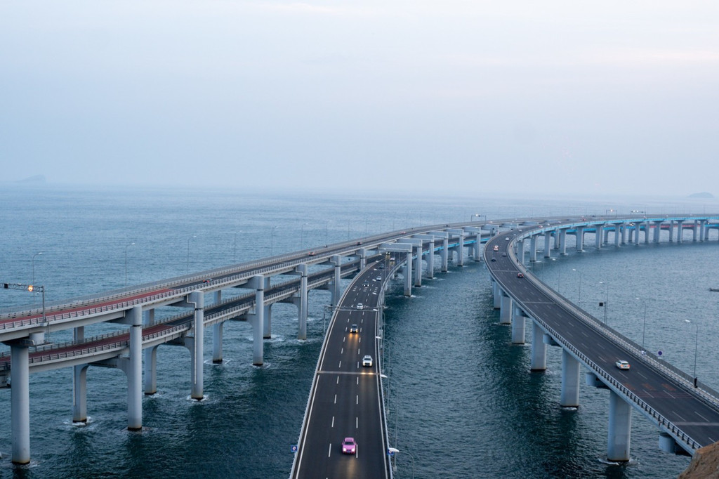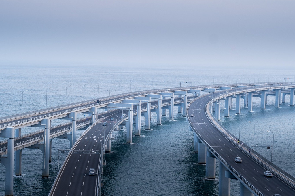 【必玩景点十四:星海湾跨海大桥】星海湾跨海大桥,也是值得一去的!全场6000米,分上下两层单向行驶。