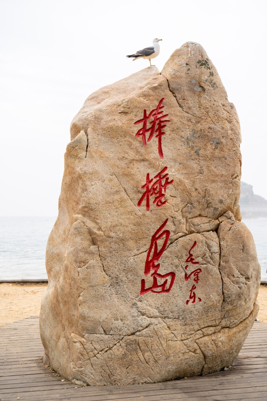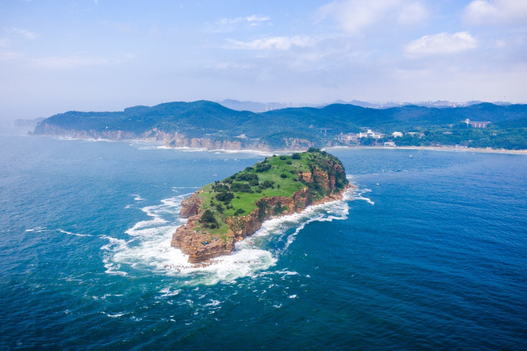 海滩对面400多米处的海中矗立着一座小孤岛,远看像一根农家捣衣服的棒棰,“棒棰岛”因此得名。