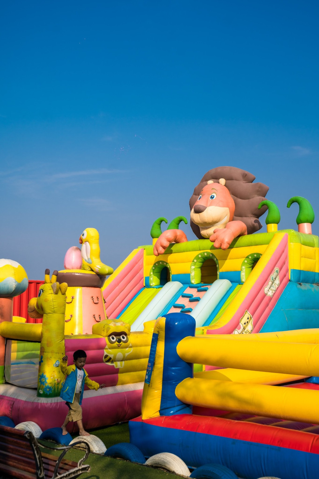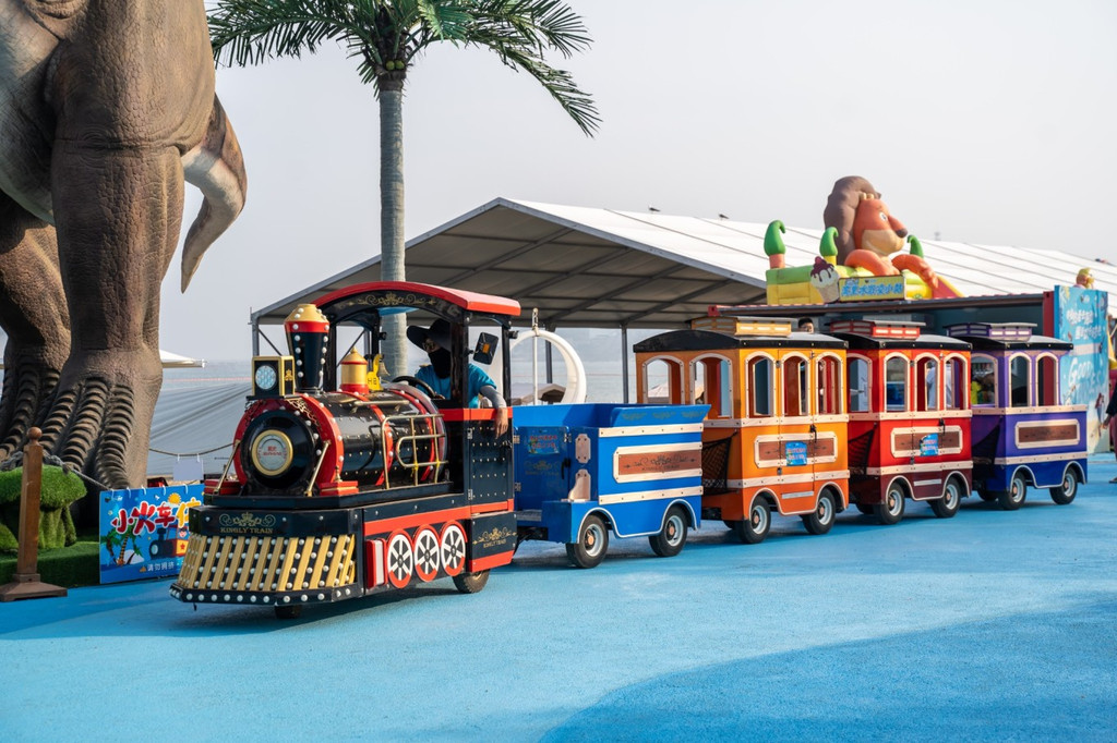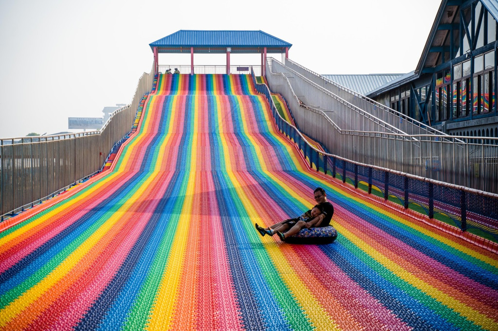 还有很多娱乐设施, 比如 小火车、蹦床、旋转木马、滑滑梯、彩虹滑道、网红荡桥等等。