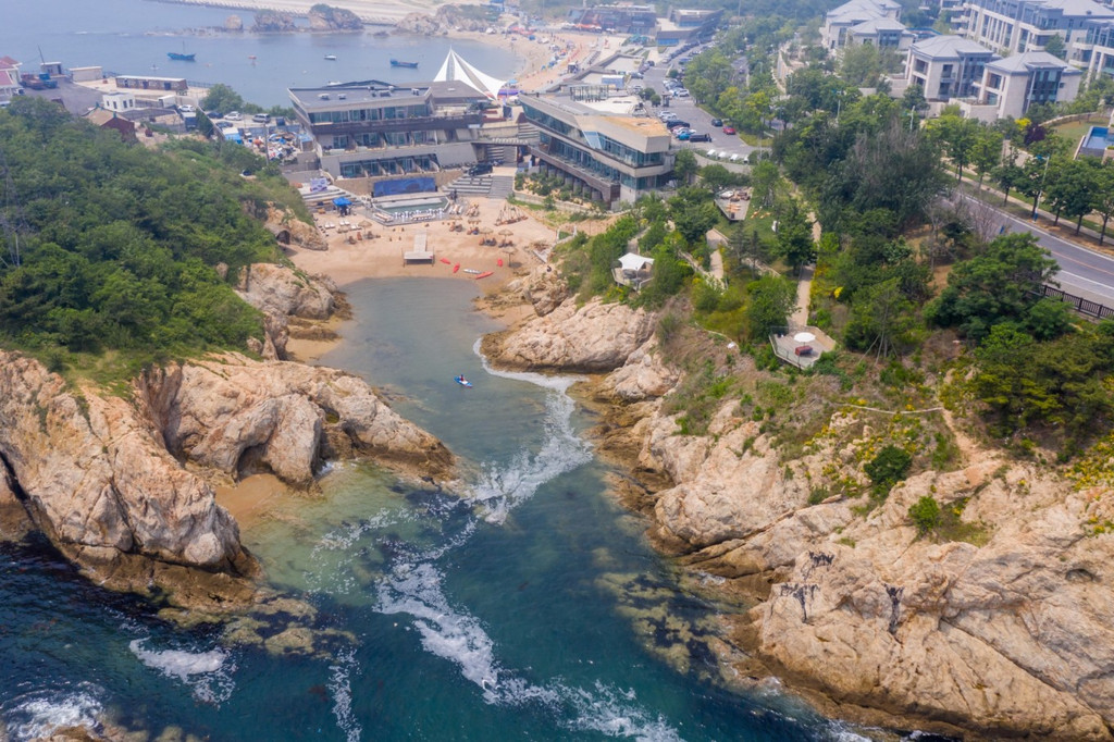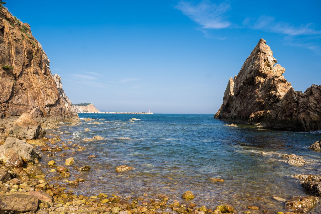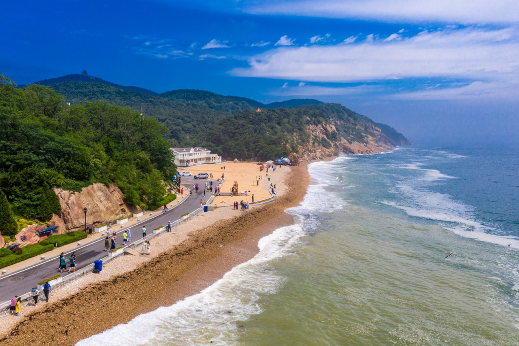 棒棰岛三面环山,一面濒海;北面为群山环绕,南面是开阔的海域 和平 坦的沙滩,海滩上还有一片凹凸不平的鹅卵石滩,在这里走走也许能收获一块心爱的石头哦。