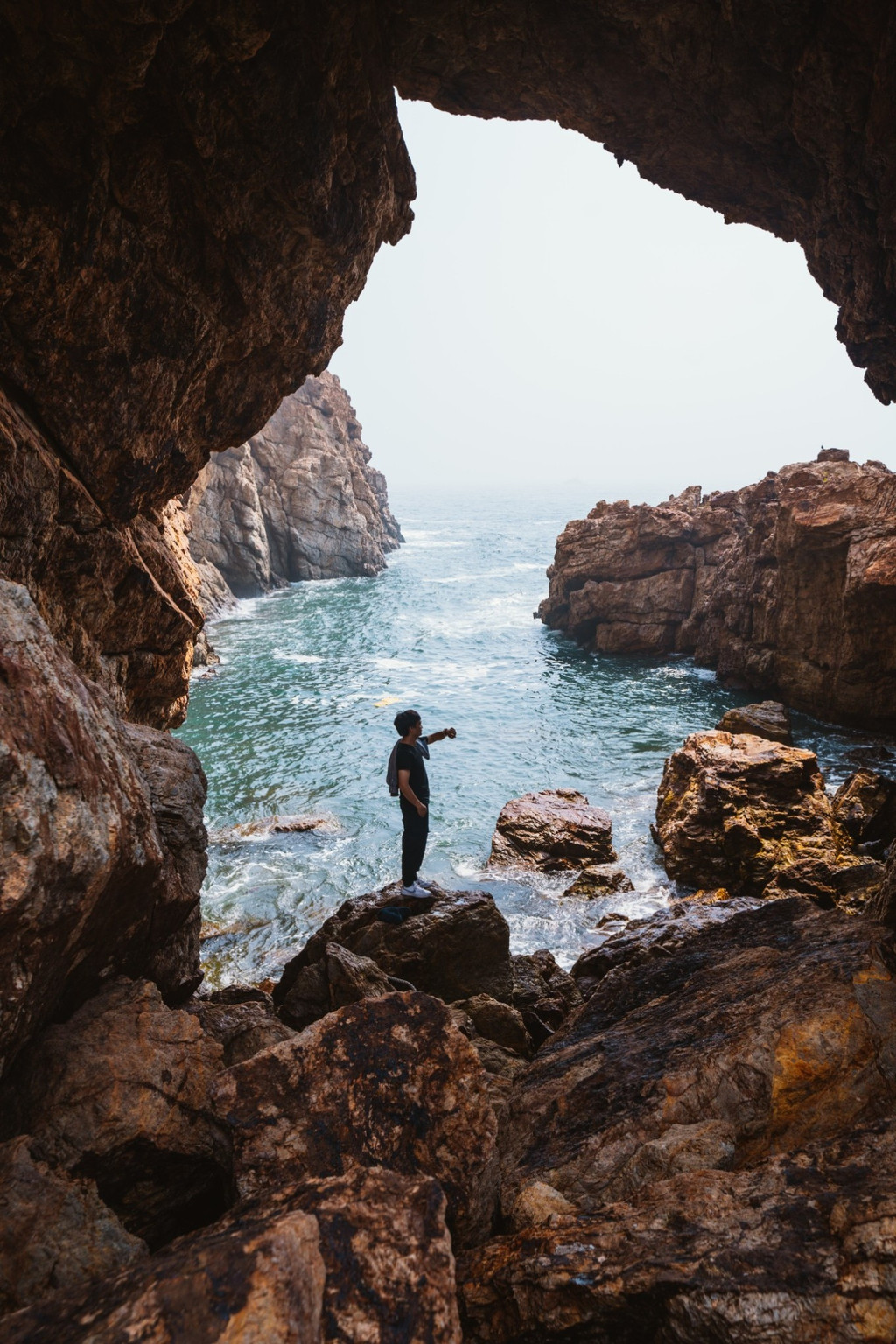 在景区深处,有一个被成为 大连 “圣象天门”的网红打卡点,过去拍照并不简单,需要手脚并用的爬过去,去拍照一定一定要注意安全。