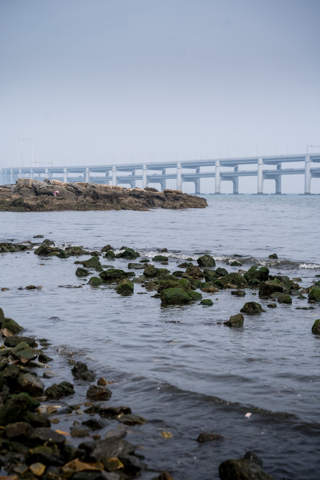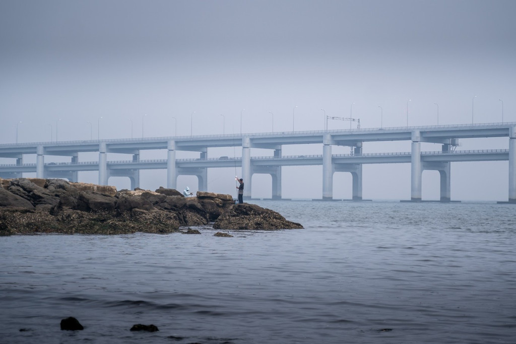 虽然 大连 的跨海大桥,是以车辆通行为主,但是是允许行人通过的,桥的两边有步行木栈道。走在这跨海大桥上,感觉非常的不一样。站在桥上看着波澜壮阔的大海,和站在岸边相比之下,那种意境和感觉是完全不同的。