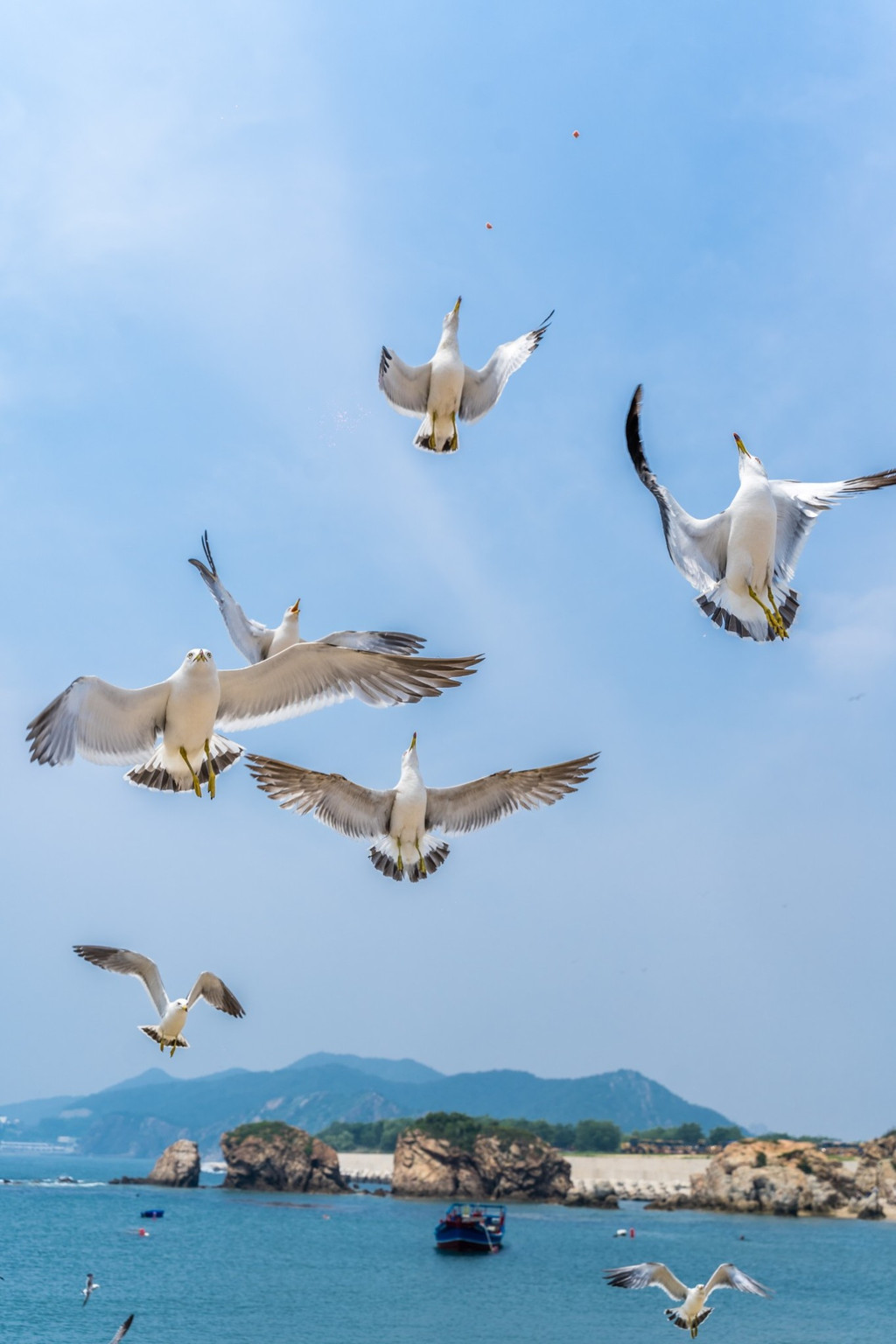 这里生态非常好,海边时常盘旋着大群的海鸥,可以带孩子来一起喂喂海鸥体验亲子乐趣。