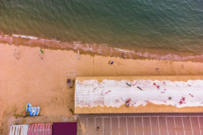 从高空俯瞰,此时风平浪静,仙浴湾好像在静静沉睡,一派岁月静好的模样。