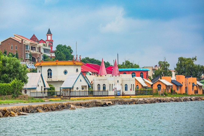 大连仙浴湾海滨旅游度假区西濒渤海,北依青山,南与长兴岛隔海相望,整个海滩呈半月形,海水清澈,水色碧蓝,沙滩柔软,非常适合带着全家出行。