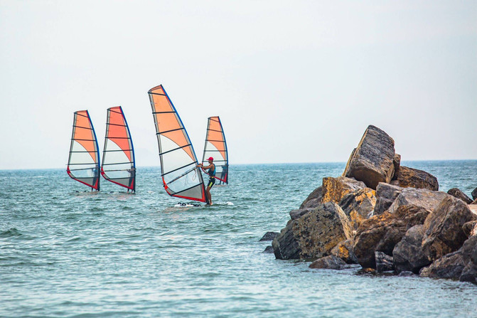 除了经典娱乐项目,还有最潮流、最新潮的水上运动。在一望无尽的大海上来一场风帆冲浪,感动刺激,帅气十足。