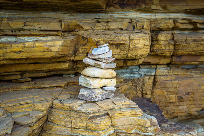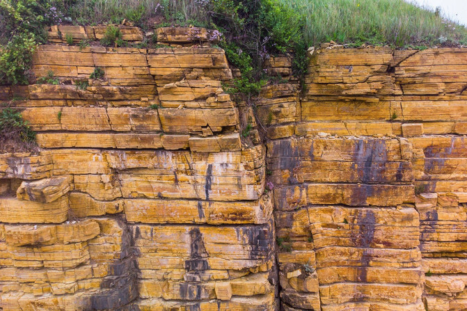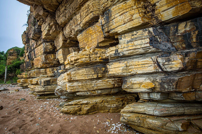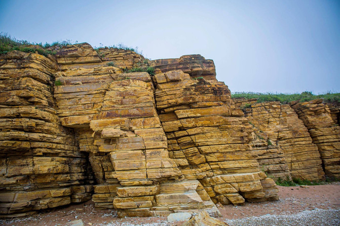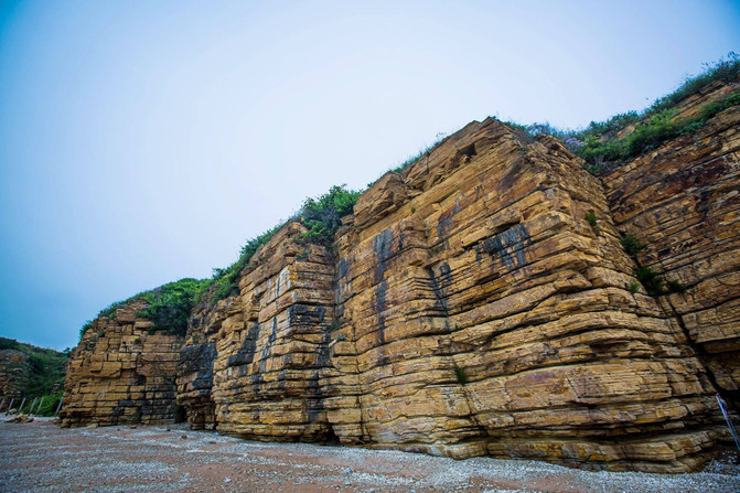 礁石一层层罗列,呈现出黄褐色,遇到吃货,怕是会想起“千层糕”。