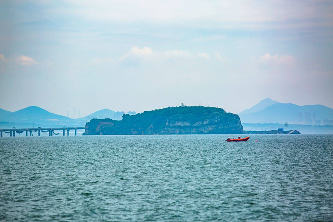 海中水藻多,因此无论晴天还是雨雾天,这里的海总是那么清澈,呈现出一种蛊惑人心的碧绿的颜色。从码头乘船,不过几分钟,就能到达海王九岛中最近的一座。海王九岛由大小海王岛、双狮岛、元宝岛等9个岛屿组成,分布精巧,每一座都有自己不同的特色和魅力。