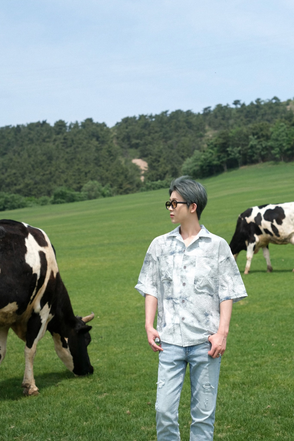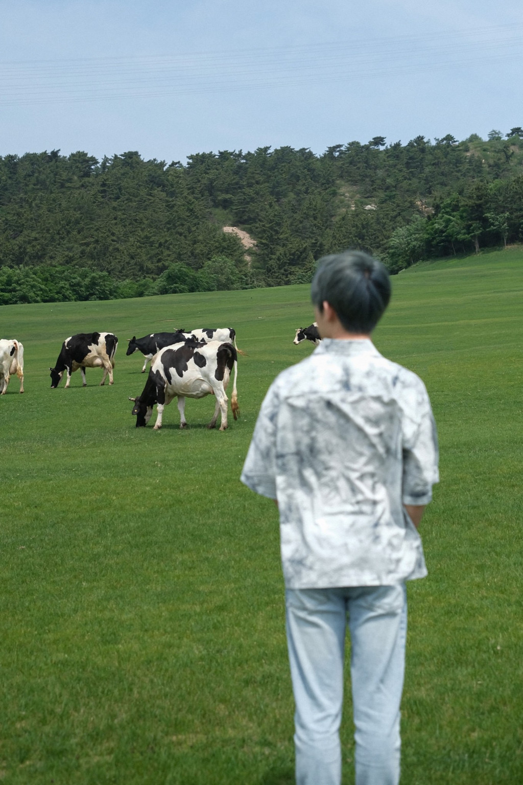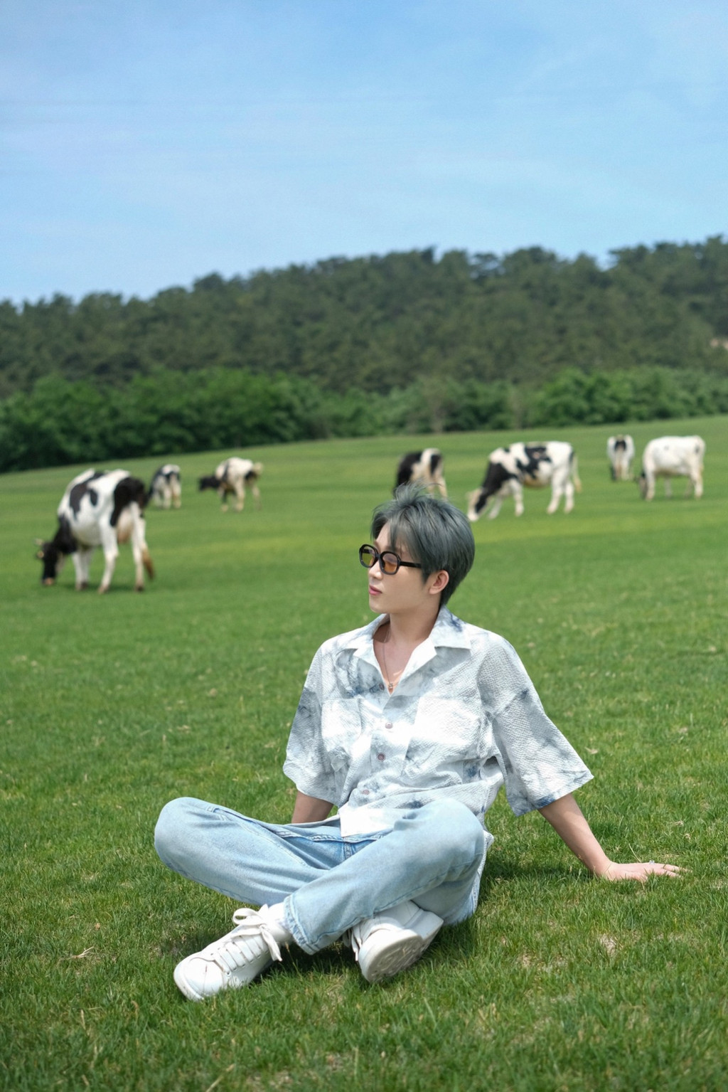 抵达正值中午,太阳当空,景色的阳光洒落在碧绿的牧场上,草地被镀成了