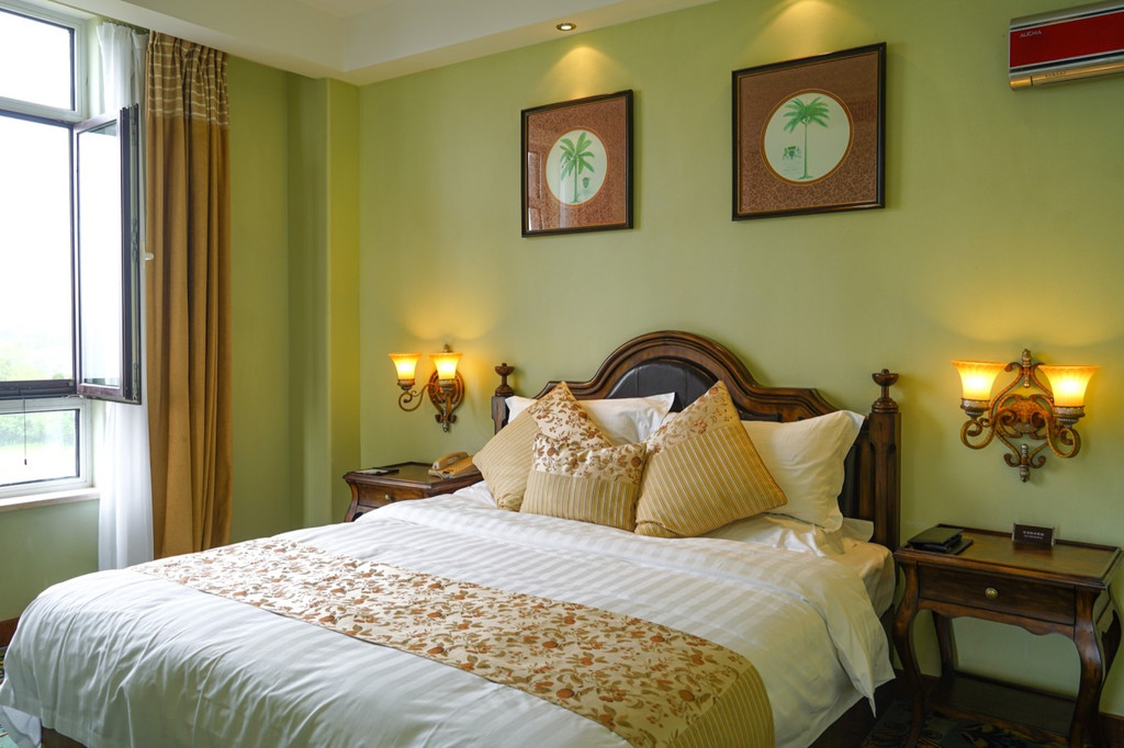尤其是吊顶水晶灯和烛灯样式的镜前灯再搭配复古花纹铜镜,真的很像穿越到百年前的古堡。整个酒店都很适合拍照,建议女生可以穿旗袍,尤其推荐在外边的花园喷泉,楼梯处和屋内的沙发,窗