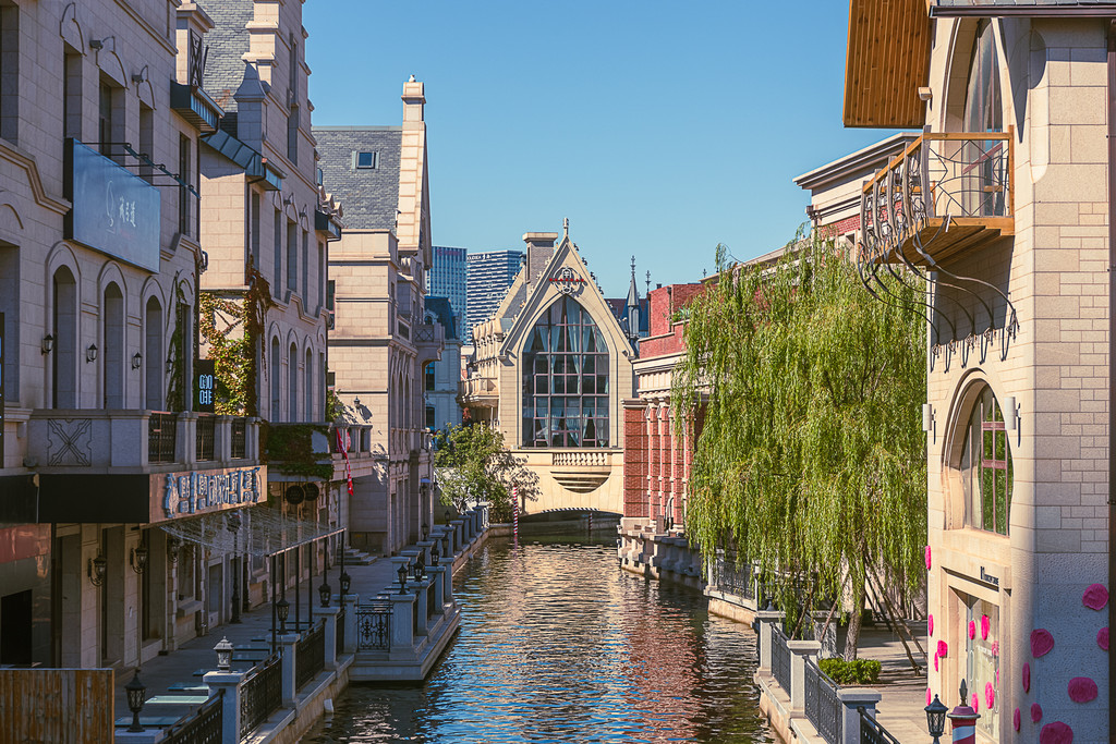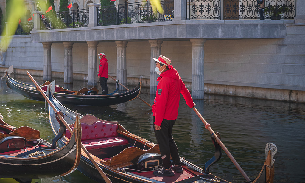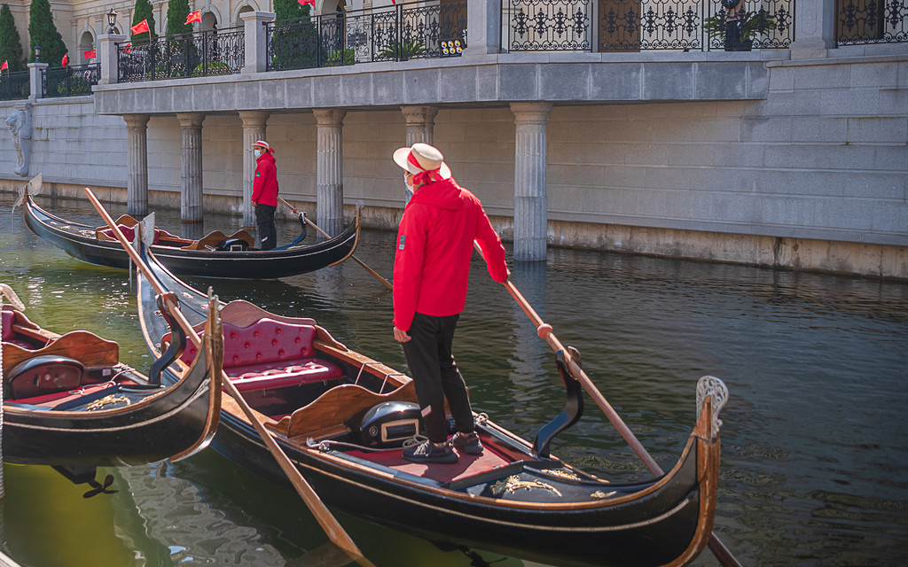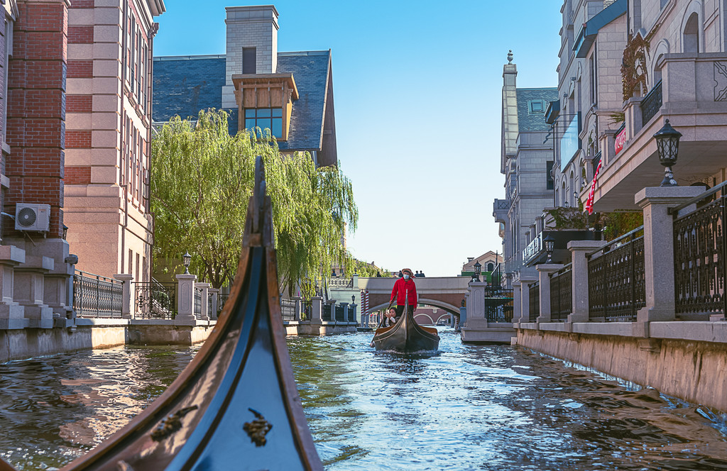 如果说这里是微缩版的水城威尼斯,显然不是很合适,因为首先这里又很大,其次,这里也不单仅仅是威尼斯风格的、依海岸线而建的海昌东方水城内有成排的欧式建筑,人工河道又穿梭于建筑之间长达4公里。而最惬意不过就是乘坐极具威尼斯特色的水上观光出租车“贡多拉”来船览水城风光。沿途两岸异域风情满满,给人置身于异国风韵意味十足!
