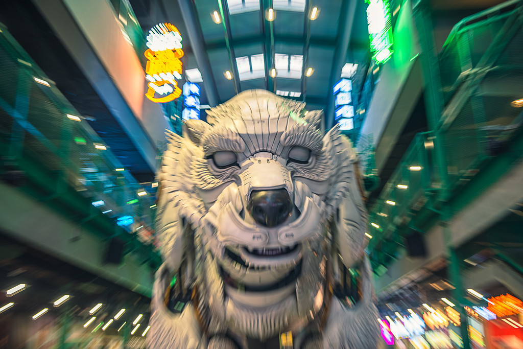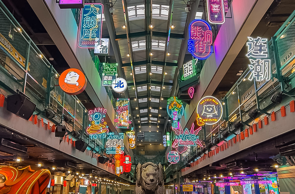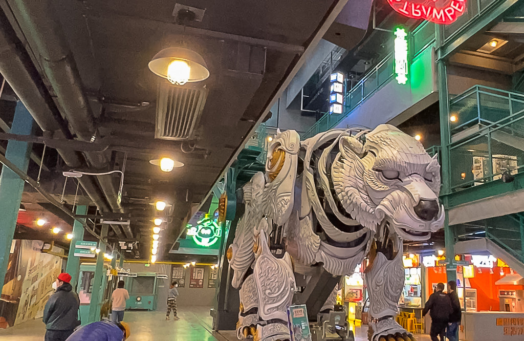 熊洞街主要是由1只“巨熊”和2条大街构成。采用LOFT空间结构和朋克设计风格,集巨兽巡游、美食娱乐、潮流艺术、科技研学、潮玩周边和夜经济于一体。工业风的蒸汽朋克 “尖叫大街”和未来风格的赛博朋克“北北大街”,用高科技与创意承载了人间的 “烟火气”。