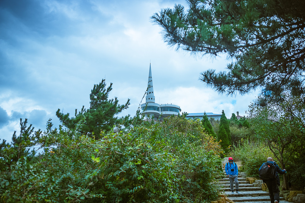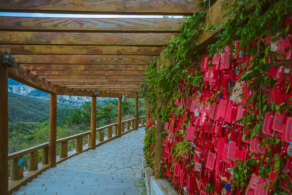 另一个免费且非常不错的景点就是大连的莲花山景区了,这里也是免费向公众开放的,而这里也是大连市区内的最高山了,莲花山海拔259.6米,在半山腰处可以欣赏到大连跨海大桥。而如果继续沿栈道向上行走,则可以登顶至最高峰,上面有一家不错的咖啡馆,当然价格在这样优质的景区里也算是良心的了,一杯咖啡二三十块钱,就可以坐在环形玻璃房的窗前欣赏整个大连市区的风景了!