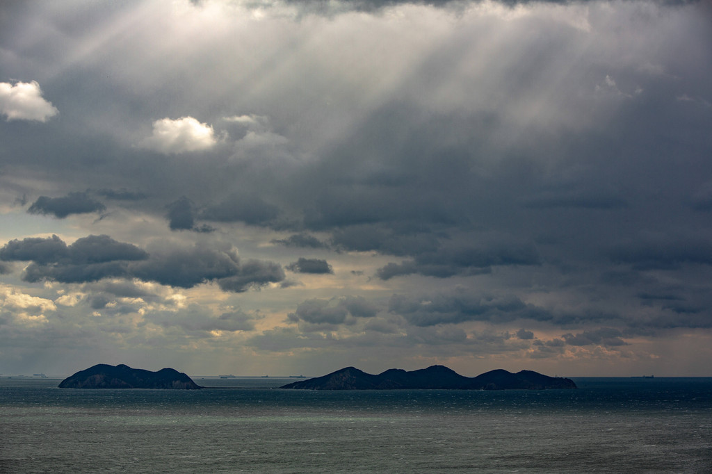 十月秋凉,一场雨让大连的海与天变得格外壮阔,风起云至,云起歌来。云层在风里的作用下不停的变幻,阳光时而从云隙中透出而洒向海面,一缕缕金光散着万丈辉煌将幽蓝的海面照亮。云影极快的挪动着身影,不停的在这一缕缕金光身旁舞动着。这是我喜欢的海景,因为有云,因为有光,无垠的大海不再那么的单调,也不再那样的孤独。在大连看海,是非常有趣的一种体验。漫长的海岸线,山海俱有的立体让这座拥抱大海的城市有着诸多独特的观海视角。