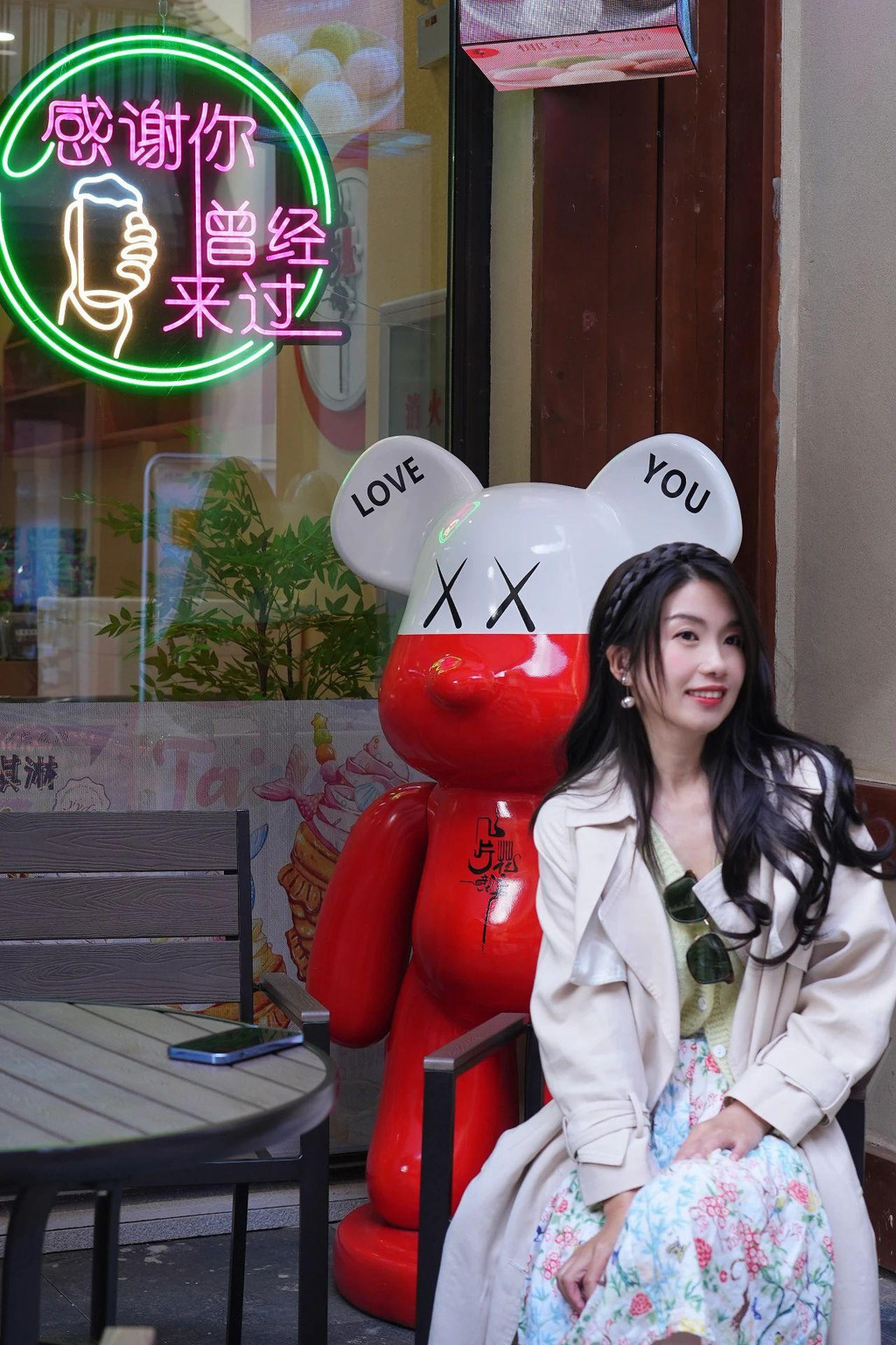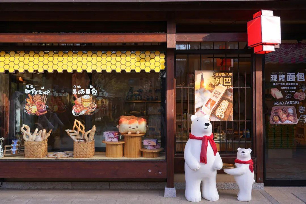 面包房的小熊好可爱啊,忍不住拍了张合影。