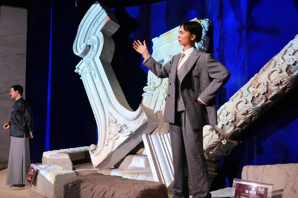 金石文化博览广场里面还有个金石蜡像馆,将传统蜡像进行全方位开级,基于独创的仿真技术,将鲁迅、爱因斯坦、乔布斯等30余尊蜡像以仿生机器人的形式重现在展馆中。