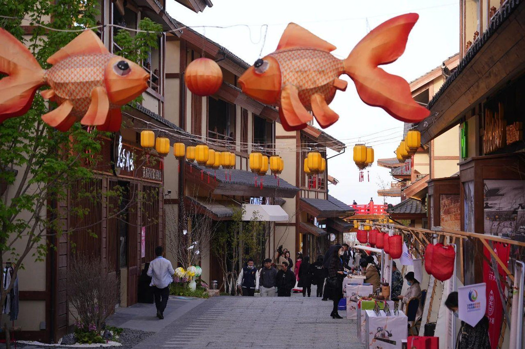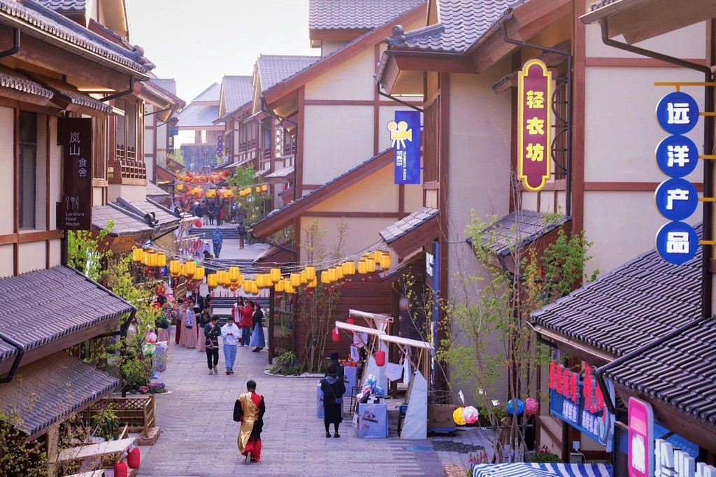 这是一个集旅游、文化、休闲、餐饮、购物、居住于一体的大型综合体,整体为仿唐朝的风格,亭台楼阁,处处渗透着唐朝的韵味。
