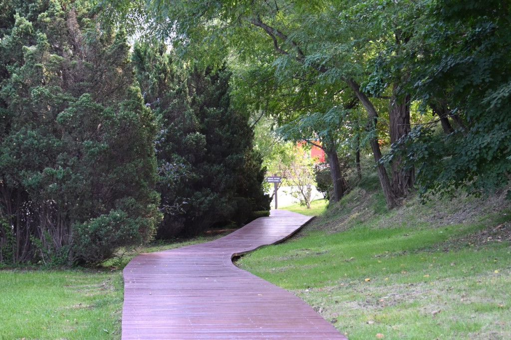 进入景区,步行大约20分钟,穿过海边的林荫小道,就可以来到海边。走在去往海滩的道路上,两旁是茂密的丛林,同时也不乏一些 西欧 风格的建筑,吹着海风,行走在这样的小道上,很是惬意。