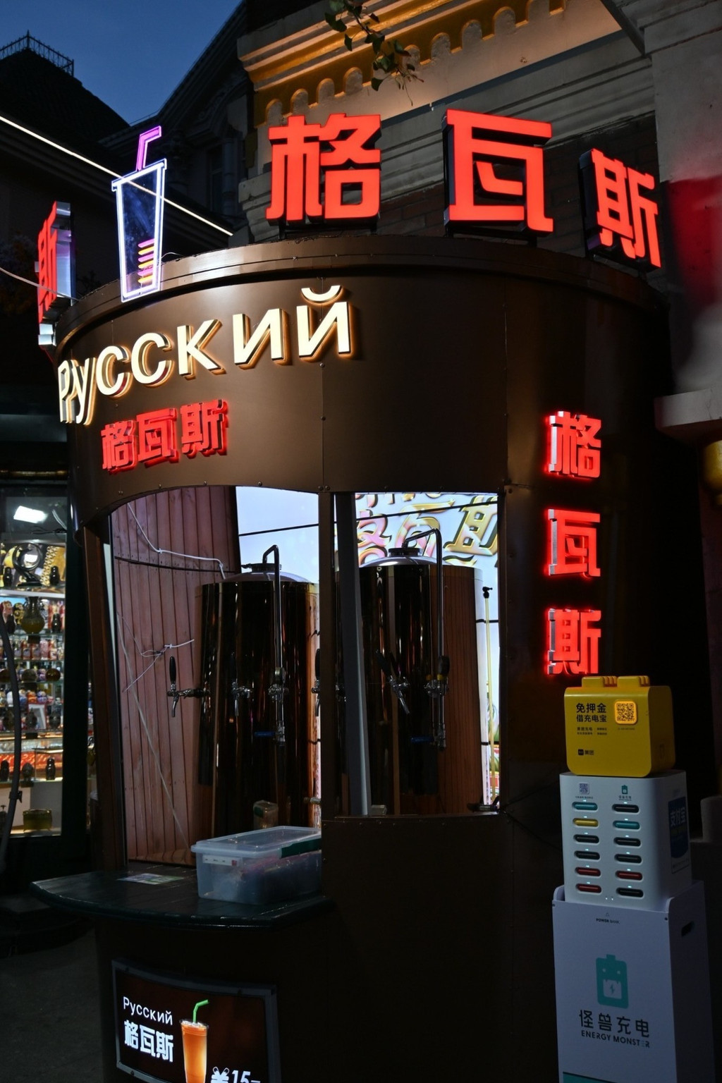 忽然,嗅到了一股小麦发酵后的酸味,跟随着这股独特的香气,我来到一家 俄罗斯 风格的小店,来了杯新鲜的格瓦斯。相比于娃哈哈3块5一瓶的格瓦斯,这个新鲜的格瓦斯,气更少,酸与甜比较平衡,第一吃喝新鲜的格瓦斯,我也不知道正宗不正宗,将来有机会去到 俄罗斯 当地,一定要试一试地道的格瓦斯。那时候,我再回来同各位朋友聊一聊 俄罗斯 地道的格瓦斯是什么个滋味。