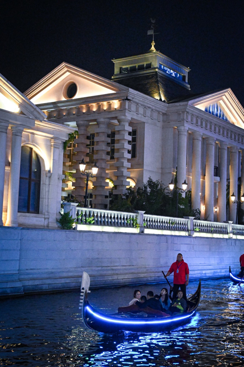 “贡拉多”,据说来自于 希腊 语的kondyle,意为轻快小船。贡拉多是独具特色的 威尼斯 尖舟,这种轻盈纤细的小舟至今已有一千多年历史了,是 威尼斯 人的代步工具。夜幕降临之后,欧式建筑群与辉煌的灯火倒映在清澈的湖水中,而你,正乘着贡拉多,缓缓地行进于这样的美景之中,仿佛置身于梦境,无比惬意,悠闲。。。。。。此时此刻,我依靠在岸旁的围栏上,吹着晚风,看着水道里来来往往的游船,心中无比宁静。